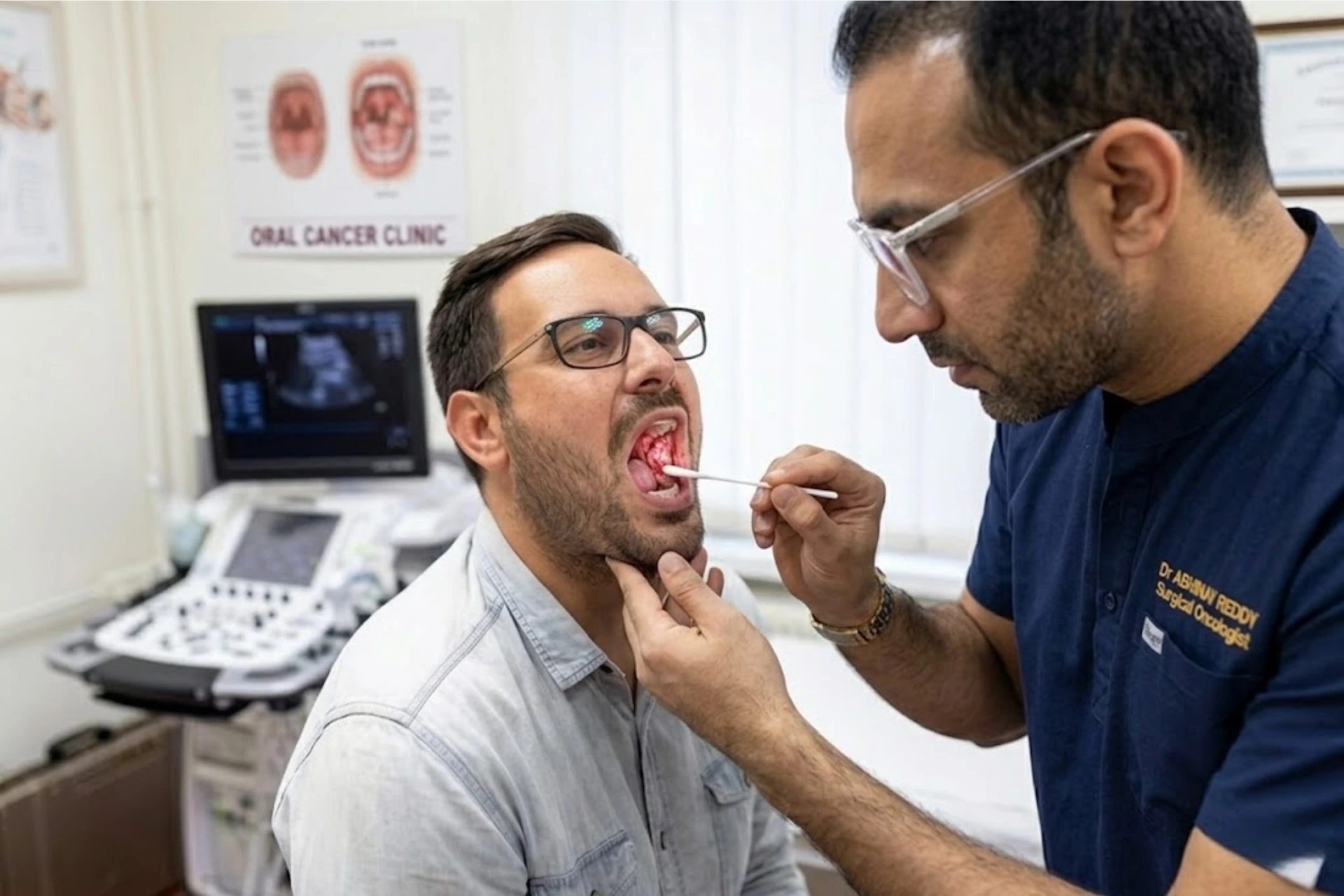 Common symptoms include non-healing mouth ulcers, cheek swelling, pain, and red or white patches inside the mouth.